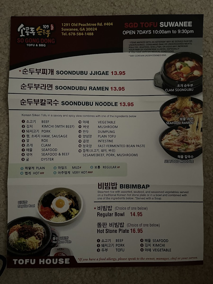 If you’re looking for a true taste of Korea in Suwanee, So Gong Dong Tofu & BBQ 109 is a must-visit!